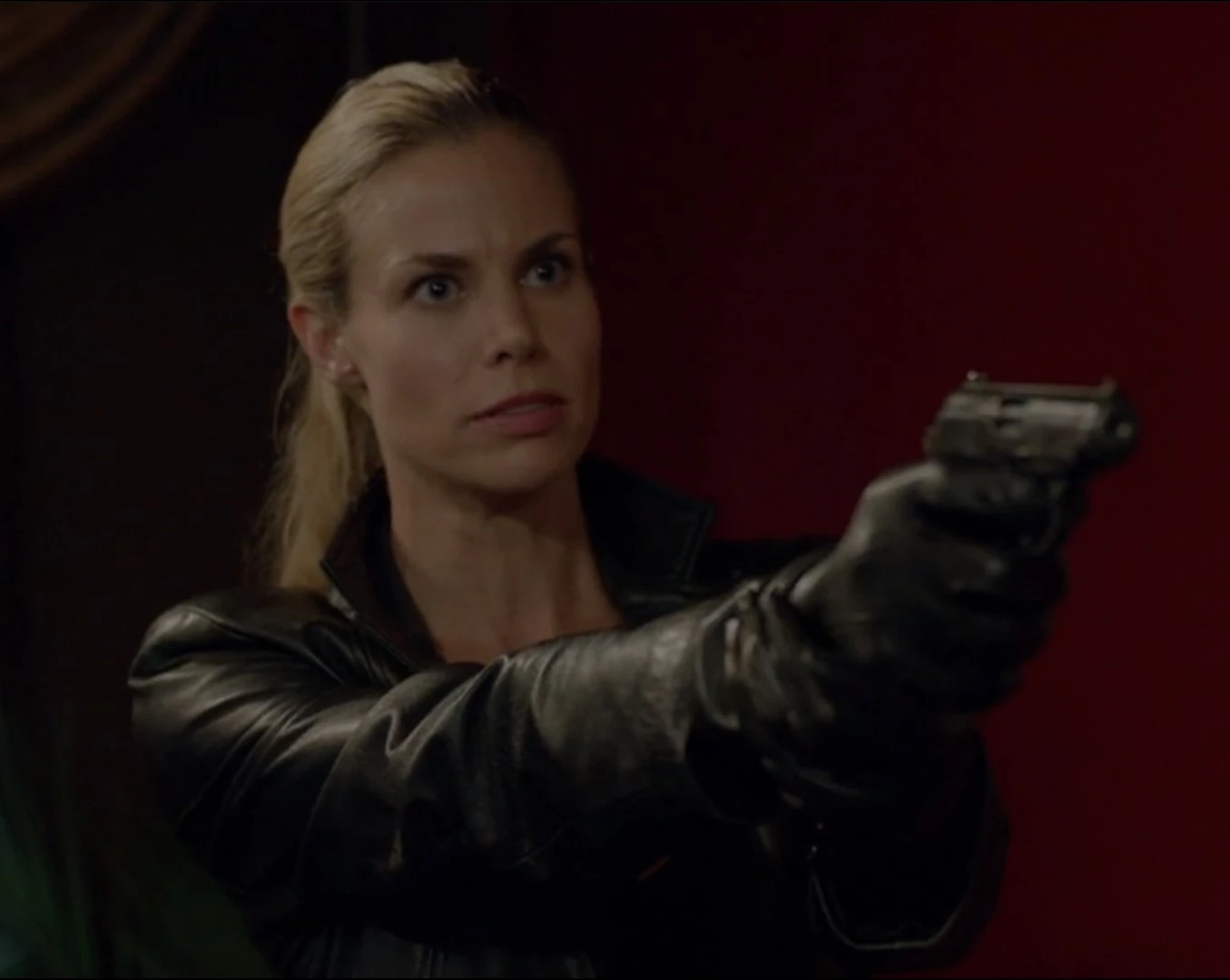 Suzanne holding Michael at gunpoint